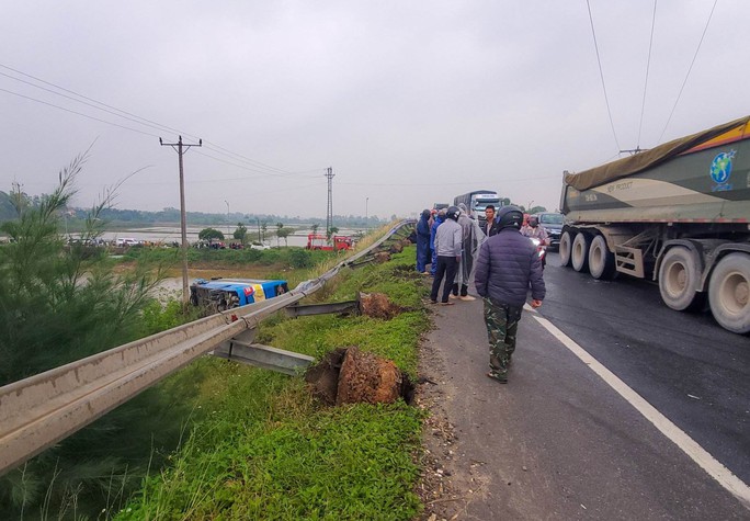 Sau cú va chạm với ôtô con, xe khách giường nằm tiếp tục tông vào một xe máy đang dừng bên vệ đường rồi lao khỏi taluy chắn và đâm xuống ruộng. Thời điểm xảy ra sự việc, nhiều hành khách ngồi trong xe khách hoảng loạn la hét thất thanh.