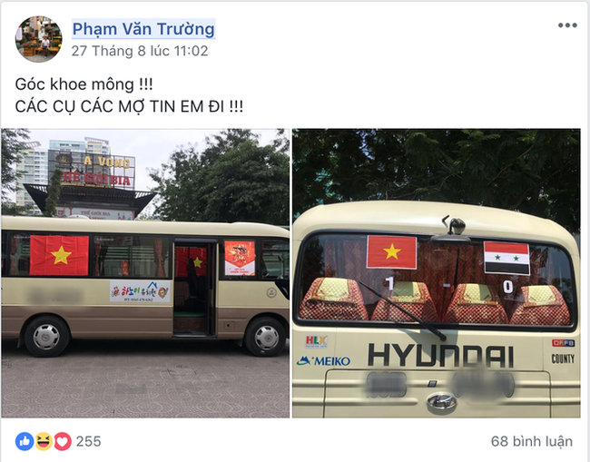 "Chiếc xe tiên tri" bắt đầu nổi tiếng và được cư dân mạng biết đến sau chiến thắng nghẹt thở của Olympic Việt Nam trước Olympic Syria. Bởi trước đó, chiếc xe khách này đã được tài xế trang hoàng bởi lá cờ đỏ sao vàng và đặc biệt là bảng tỷ số Syria 0-1 Việt Nam được dán phía sau xe!