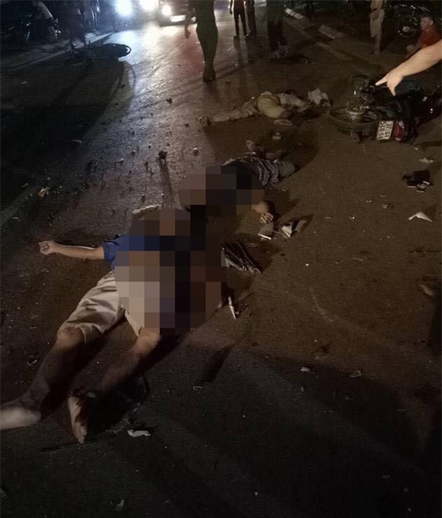Vụ tai nạn nghiêm trọng đã thu hút hàng trăm người dân hiếu kỳ, dù trời đã khuya. Tại hiện trường, 3 nam thanh niên bị hất văng, nằm chết rất thương tâm. Chiếc xe máy nát bét, phần đầu ô tô khách 16 chỗ cũng bị lún, hư hỏng nặng.