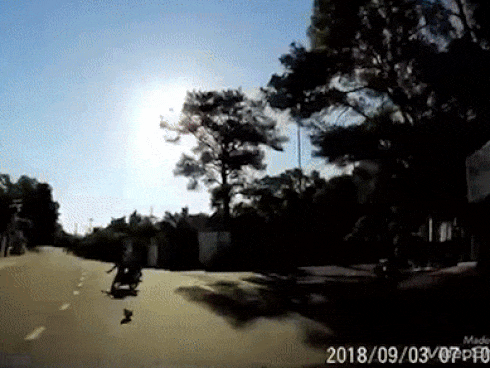 Xe máy lao từ ngõ ra đường không quan sát, bị xe tải đâm trực diện, 2 người trên xe máy ngã văng.