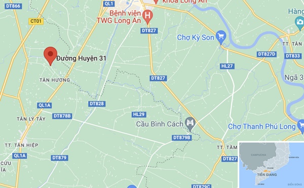 Vụ tai nạn xảy ra trên đường huyện 31, huyện Châu Thành, Tiền Giang. Ảnh: Google Maps.