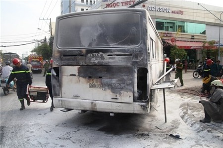 Hiện trường vụ cháy xe chở học sinh trên đường Huỳnh Tấn Phát. |