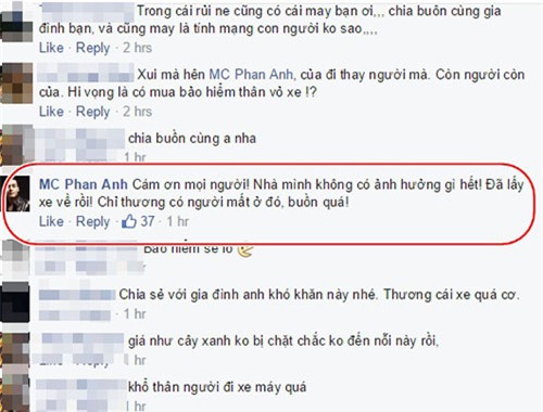 hết! Đã lấy xe về rồi! Chỉ thương có người mất ở đó, buồn quá!".