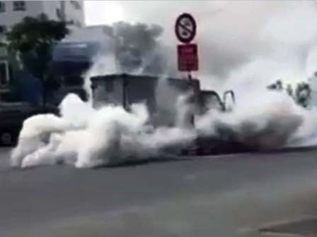 Xe tải bốc khói ngùn ngụt trên đại lộ Phạm Văn Đồng