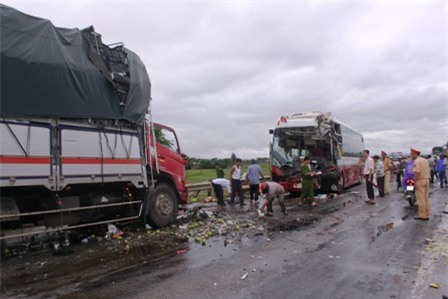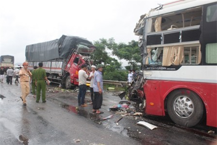 Được biết, xảy ra vụ tai nạn, trên xe khách chở khoảng gần 15 hành khách đang trên đường đi vào TP Hồ Chí Minh thì gặp nạn. Anh Lê Công Trung - phụ xe khách giường nằm vẫn chưa hết bàng hoàng sau vụ tai nạn, kể lại: “Lúc xảy ra tai nạn trời mưa to. Chúng tôi đang ngồi nói chuyện thì bỗng dưng chiếc xe tải từ bên kia đường lao sang, đâm thẳng vào. Sau khi bị choáng một lúc tôi tỉnh dậy thì thấy nhiều người ngồi trong xe bị thương do va đập vào xe”.
