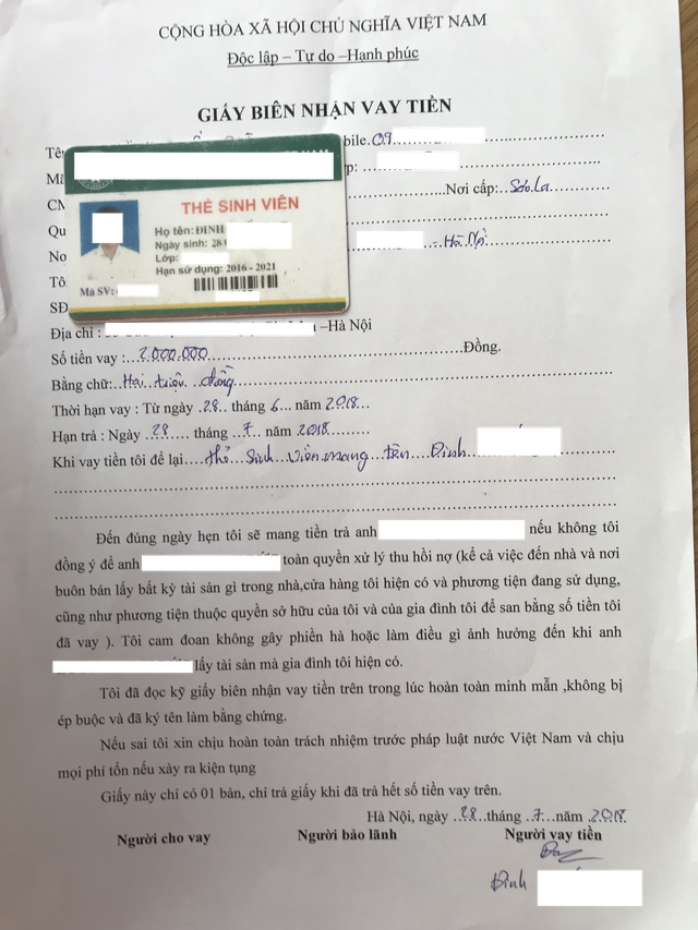 Tuy nhiên, theo anh Đ, việc cho vay tiền bằng thẻ sinh viên không đơn giản chỉ mang thẻ đến và lấy tiền. Việc có thể cho vay bao nhiêu tiền còn dựa vào nhiều yếu tố.