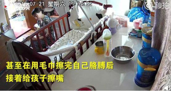 Tuy nhiên, điều đáng chú ý hơn là trước khi người giúp việc này cho con chị ăn sữa ở chai, Yuesao đã mở bình sữa ra và uống thử một ít, sau đó tiếp tục nắp bình lại và cho bé 5 tháng uống. Ngoài ra, bình sữa và chậu rửa được người vú em này dùng chung với nhau, thậm chí Yuesao còn lấy khăn của mình lau miệng rồi lại lau cho bé sơ sinh.