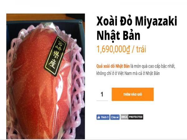 Cùng với đó, một số trang bán hàng qua mạng ở Việt Nam, ra giá gần 1,7 triệu đồng cho một quả xoài đỏ Nhật Bản nặng chỉ 350-400g. Đều này đồng nghĩa với việc, nếu tính theo cân, xoài đỏ Nhật đắt gấp cả 100 lần giá xoài của Việt Nam, thế nhưng vẫn được người dân ưa chuộng.