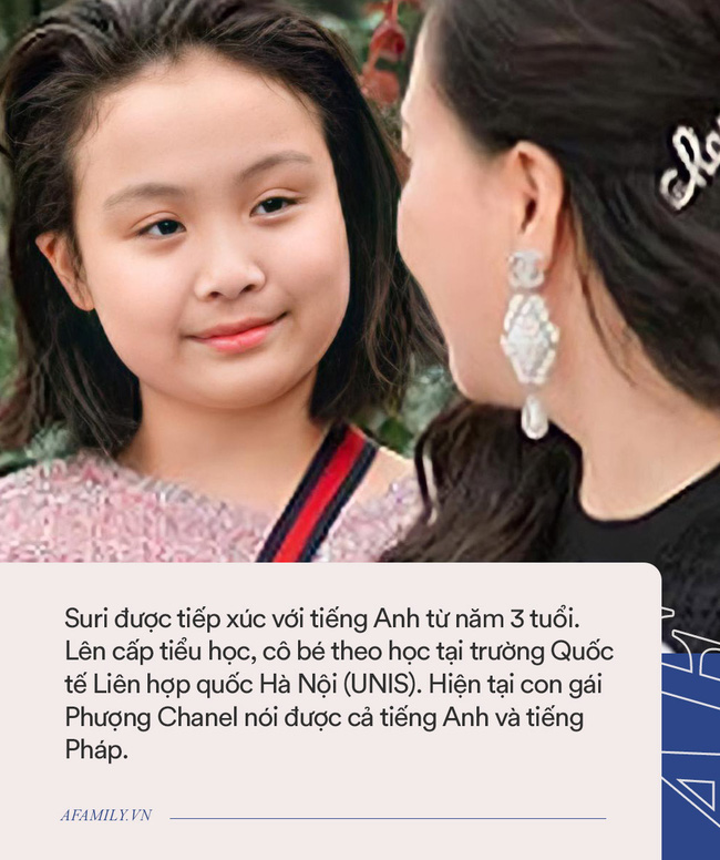Được biết, con gái cưng của Phượng Chanel còn tạo một kênh YouTube chuyên giới thiệu đồ chơi bằng tiếng Anh, thu hút được nhiều sự chú ý và lượt xem. Hàng ngày, Suri cũng thường xuyên đọc sách, truyện bằng tiếng Anh. Ngoài tiếng Anh, cô bé có thể nói được cả tiếng Pháp, biết chơi đàn piano, violin,...
