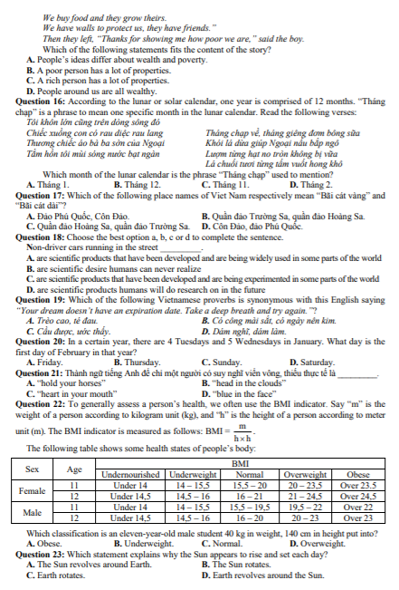 Các câu hỏi lĩnh vực khoa học tự nhiên là những vấn đề khoa học đời sống, thông tin, kiến thức khoa học vận dụng vào tình huống trong cuộc sống.