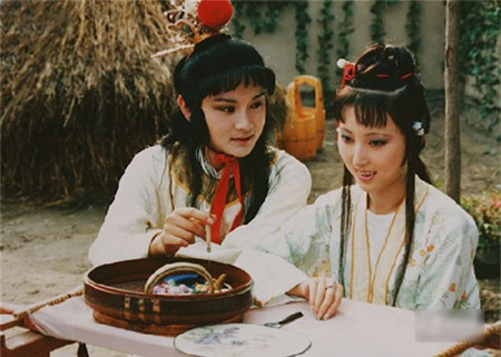 Cặp đôi đẹp Giả Bảo Ngọc (Âu Dương Phấn Cường) và Lâm Đại Ngọc (Trần Hiểu Húc) trong Hồng lâu mộng. |