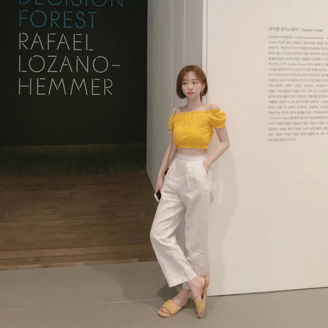 Nếu tự tin với vóc dáng của mình, ngại gì mà không diện kiểu áo croptop trễ vai khoe eo thon như cô nàng này.