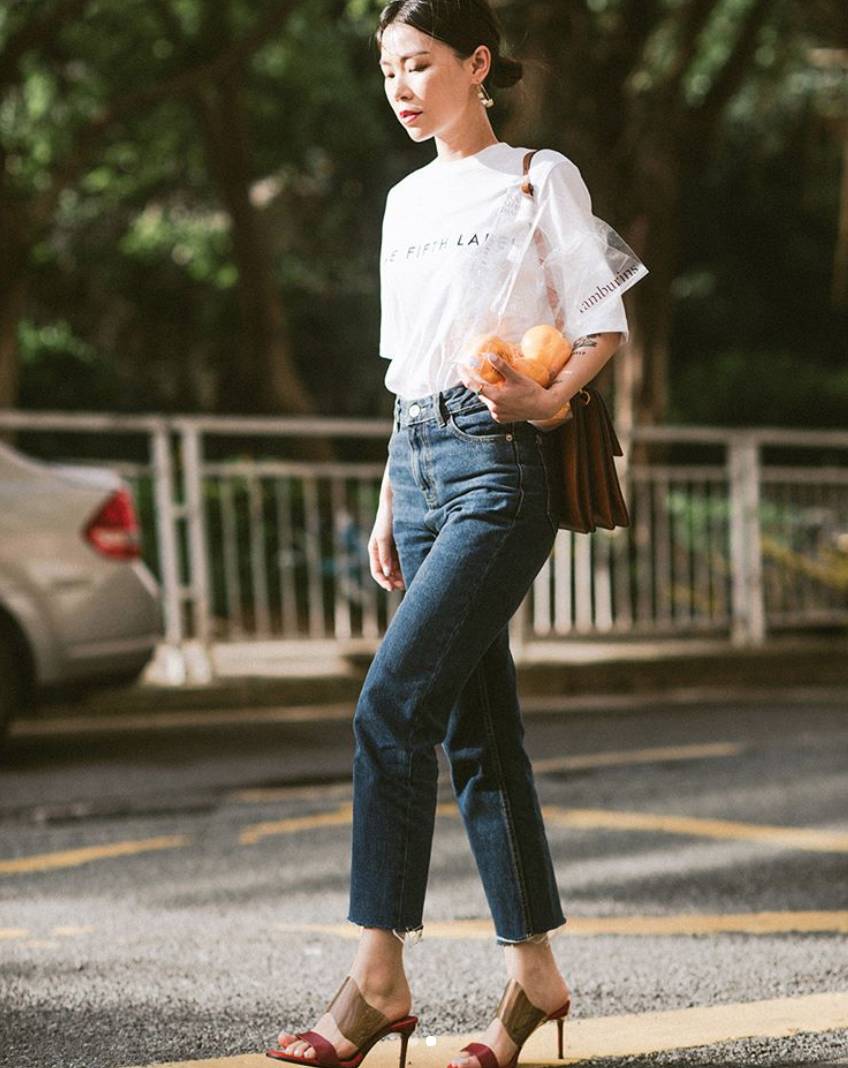 Áo phông và quần jeans là bộ đôi không bao giờ lỗi mốt, nhưng để bộ đôi này không nhàm mắt thì hãy chú ý đến cách kết hợp các phụ kiện cho bộ đồ như cô nàng này.