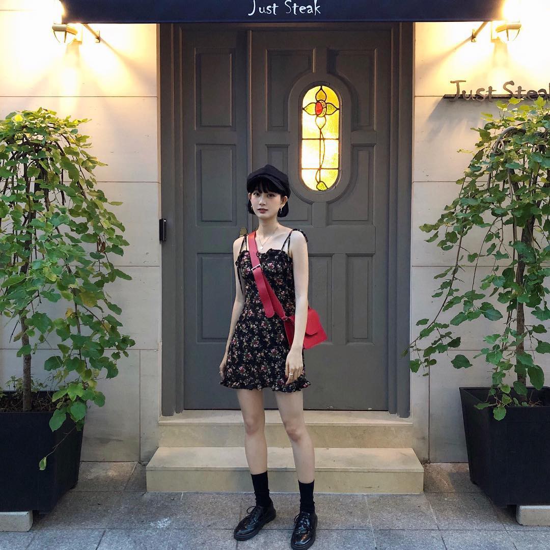 Cô nàng này có cách làm mới chiếc váy hoa hai dây khá độc đáo, thay vì chọn giày cao gót đi kèm, cô nàng đã chọn cho mình đôi oxford da bóng trẻ trung.