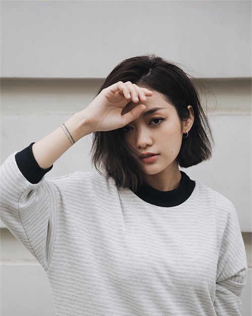Tóc Bob kết hợp với mái thưa giúp hot girl Khả Ngân giấu được nhược điểm gương mặt dài và gầy