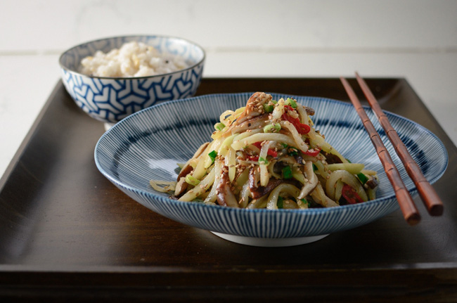 2. Su su xào nấm Su su, nấm hương, ớt, hành lá, tỏi, nước lọc, nước tương, muối, vừng rang
