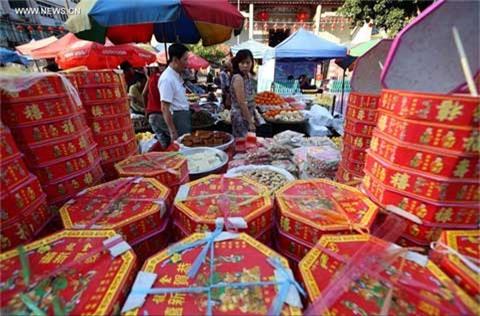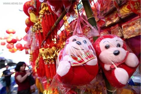Người dân Singapore đi mua sắm đồ Tết tại Chinatown Một phụ nữ chọn đồ trang trí Tết tại một cửa hàng ở Phnom Penh, Campuchia Năm mới Bính Thân bắt đầu vào ngày 8/2 Người dân mua đồ Tết tại Chinatown ở Yangoon, Myanmar Đồ chơi có hình con vật đại diện cho năm 2016 được bày bán ở Myanmar Chủ cửa hàng trang trí đang chờ khách tới sắm đồ Tết tại Bangkok, Thái Lan. Đèn lồng hình khỉ trên đường phố Indonesia |
