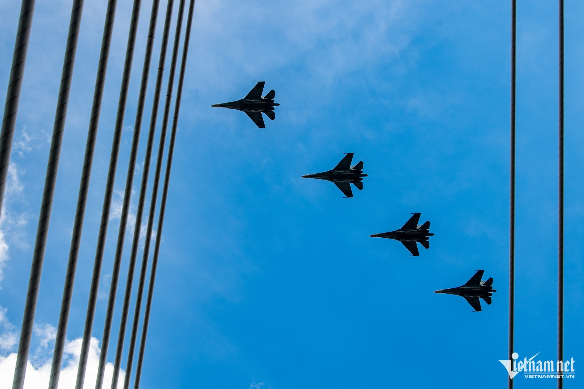 Su30MK2 bay qua khu vực cầu Ba Son ở độ cao 350-400m, đến bờ sông Bến Bạch Đằng độ cao hạ xuống khoảng 200m. Ảnh: Hoàng Hà.