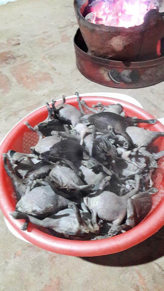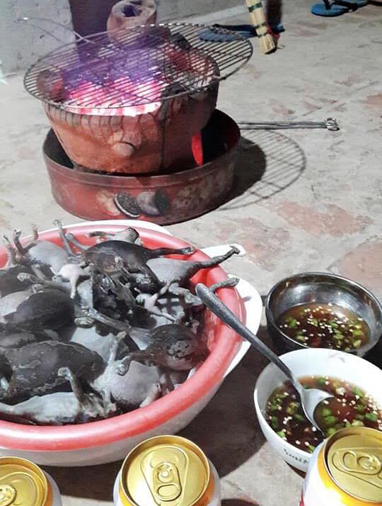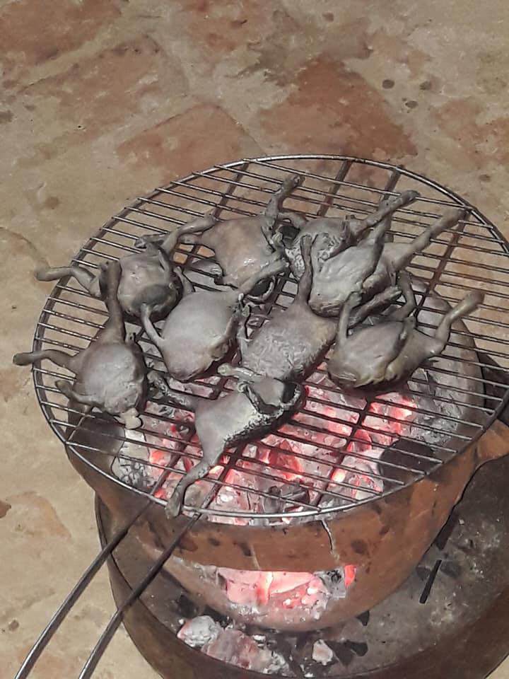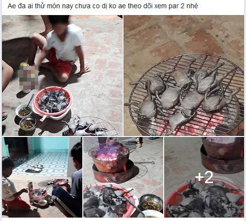 N.Dũng viết “Anh em đã ai thử món này chưa, có dị không” và sau đó là một loạt ảnh về món ếch nướng kinh dị kiểu này.