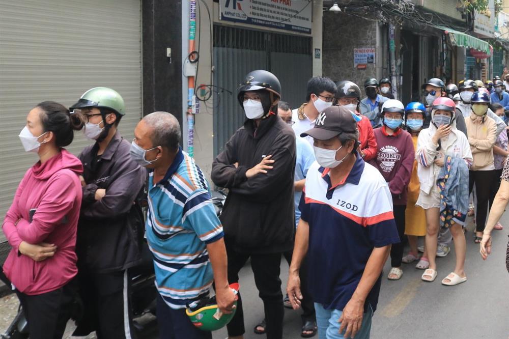 Hàng đoàn người xếp hàng chen chân mua bánh mì.