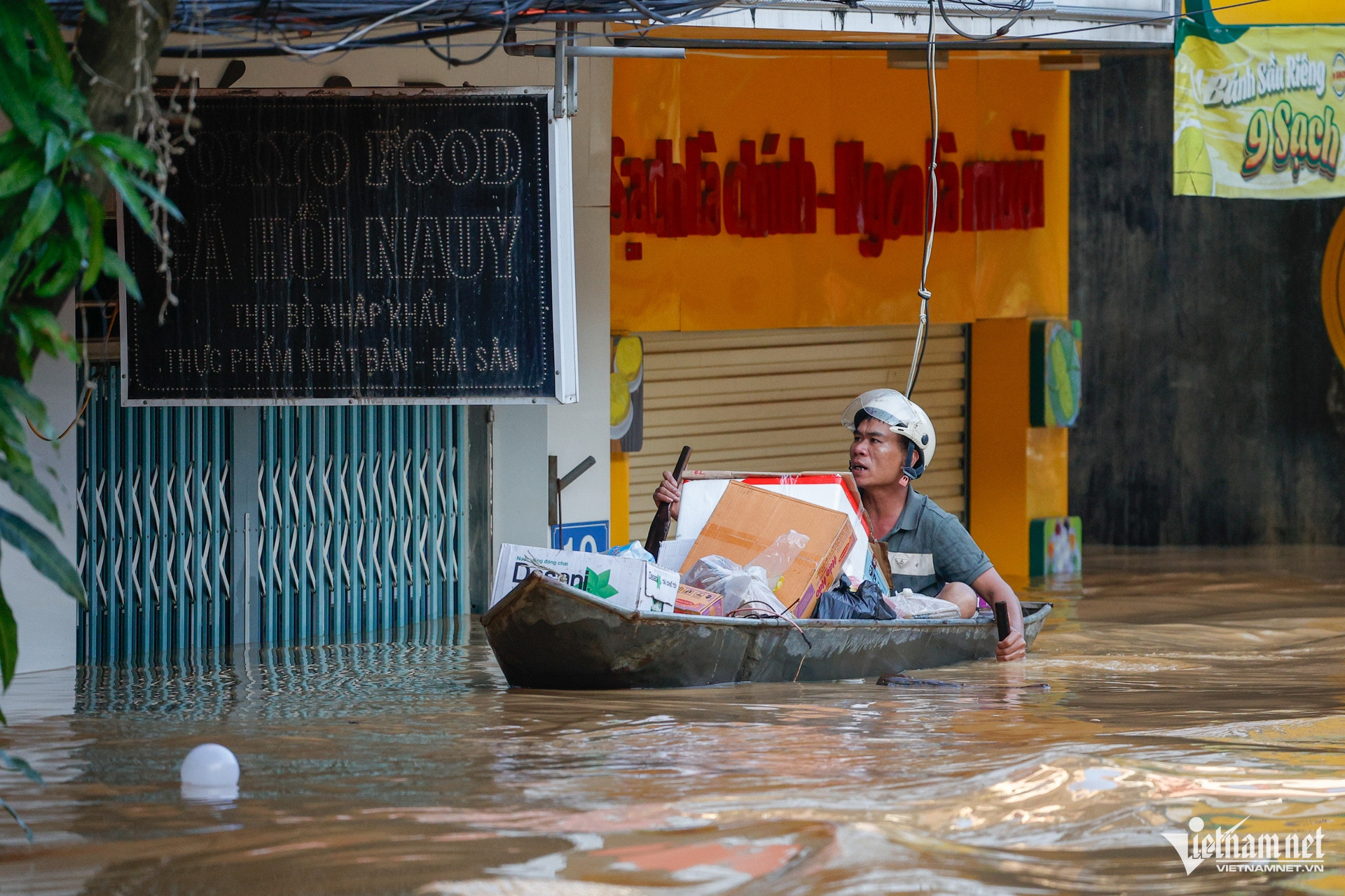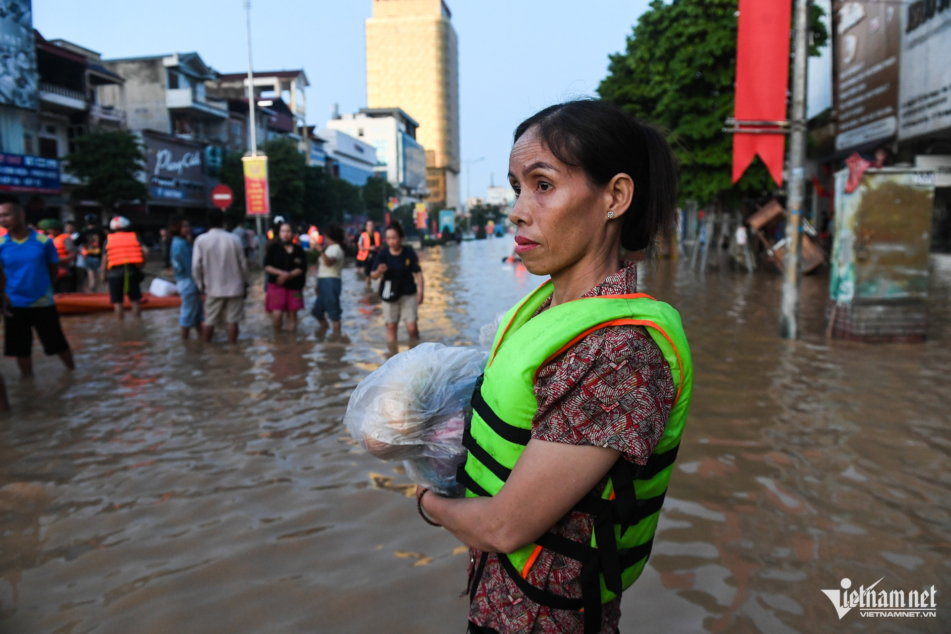 Nhận được thực phẩm mang về, chị Thu thẫn thờ đứng ở một góc đường vì chưa biết phải di chuyển bằng cách nào. Ở nhà chị còn con nhỏ, đang chờ mang thức ăn, nước uống về. Rất ít thuyền bè đi hướng đó, vì có đoạn nước xoáy sâu, chảy xiết. "Tôi đang chờ có cano to nào xuất phát để xin đi theo cùng. Được tới đoạn nào hay đoạn đó", người phụ nữ bần thần. Cả ngày đầm mình trong làn nước lũ, người chị cũng lạnh ngắt, run lên theo từng nhịp.