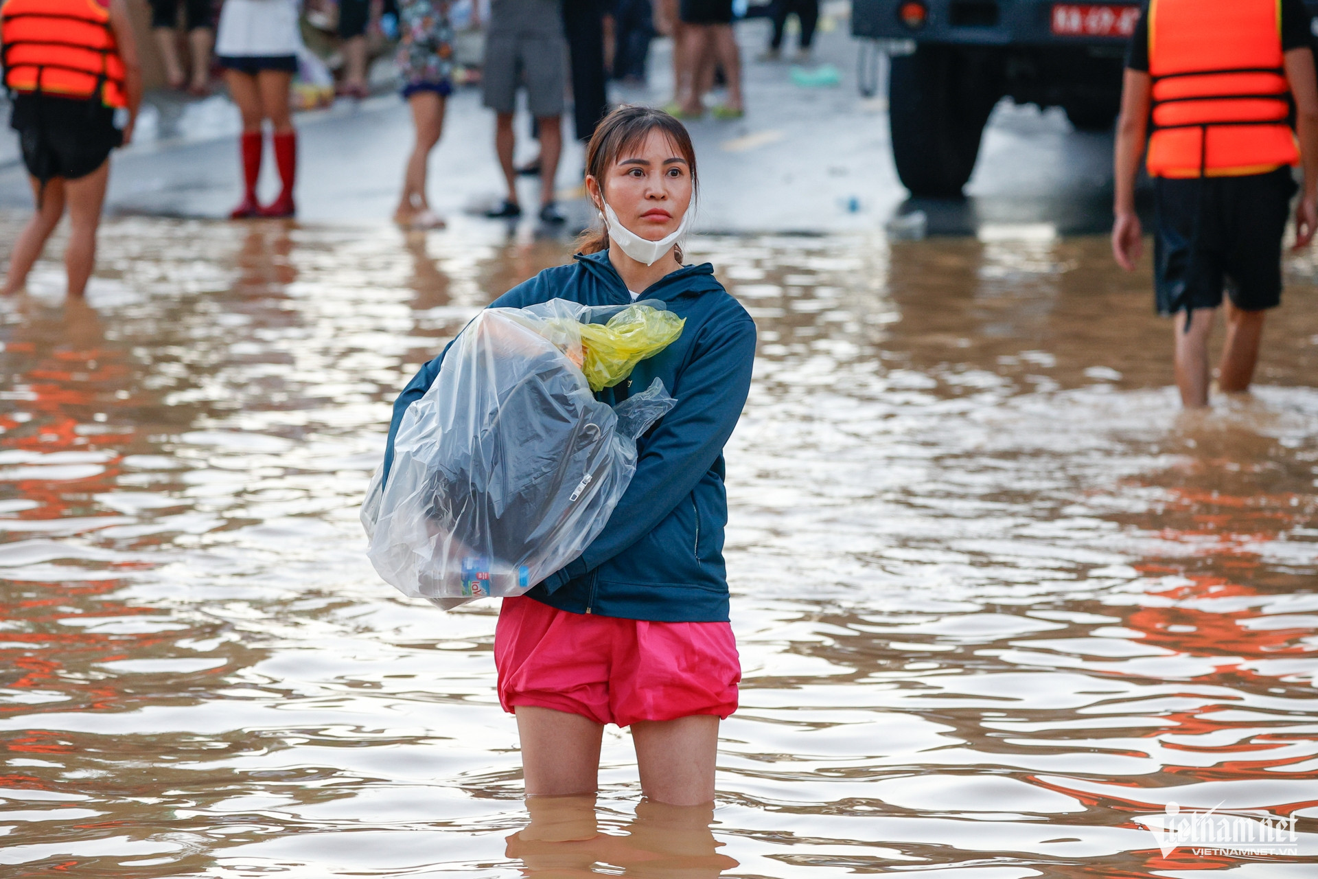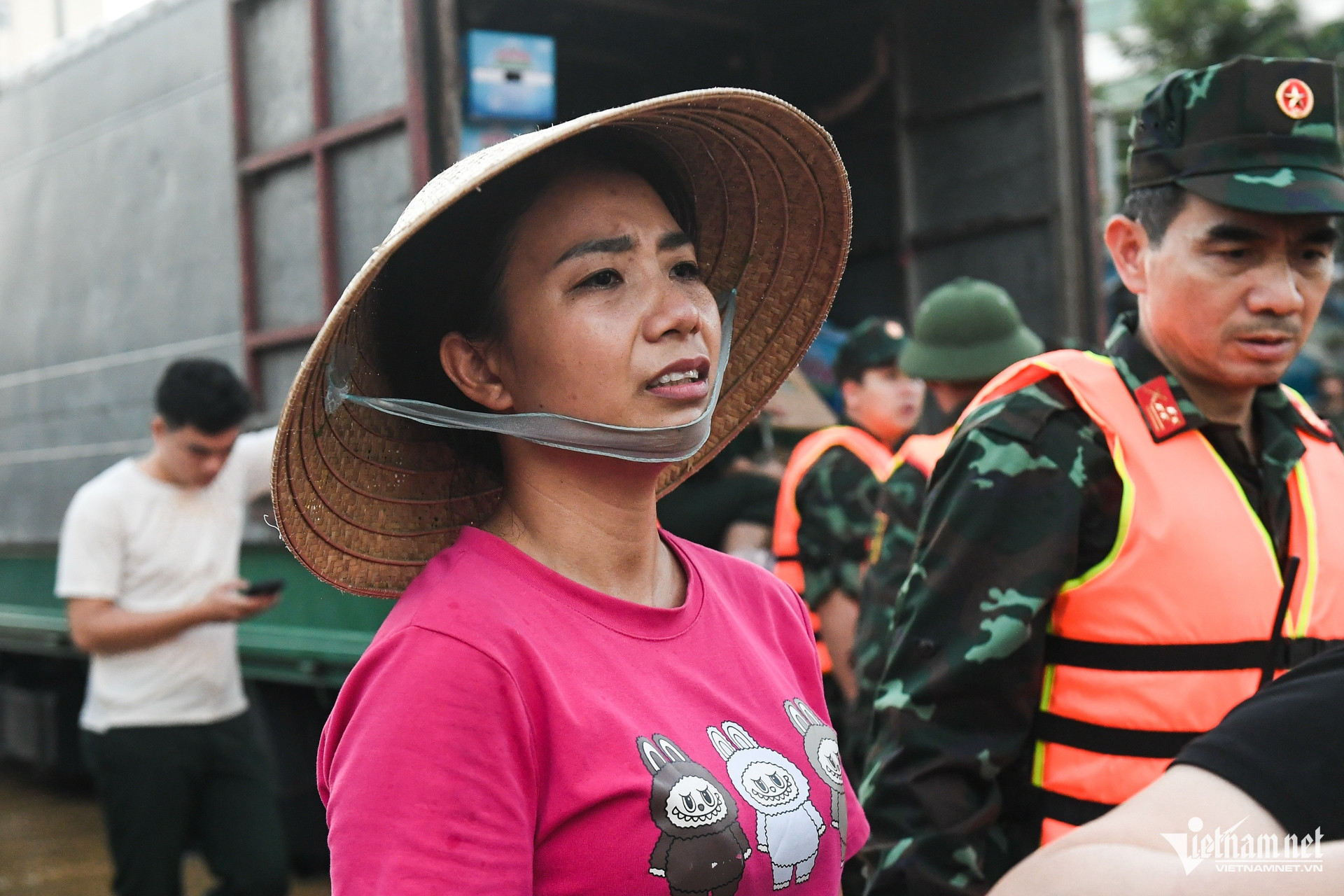 Cũng vừa nhận được đồ cứu trợ, chị Hải ôm bọc cơm, bánh mì và nước lọc đứng chờ để được về nhà. Chị kể đã 3 ngày khu nhà ở của chị chìm trong biển nước đục ngầu. Các con đã nhịn đói hơn hai ngày trời. "Giờ tôi chỉ mong có thuyền qua nhà để về với chúng nó", chị mệt mỏi nói.