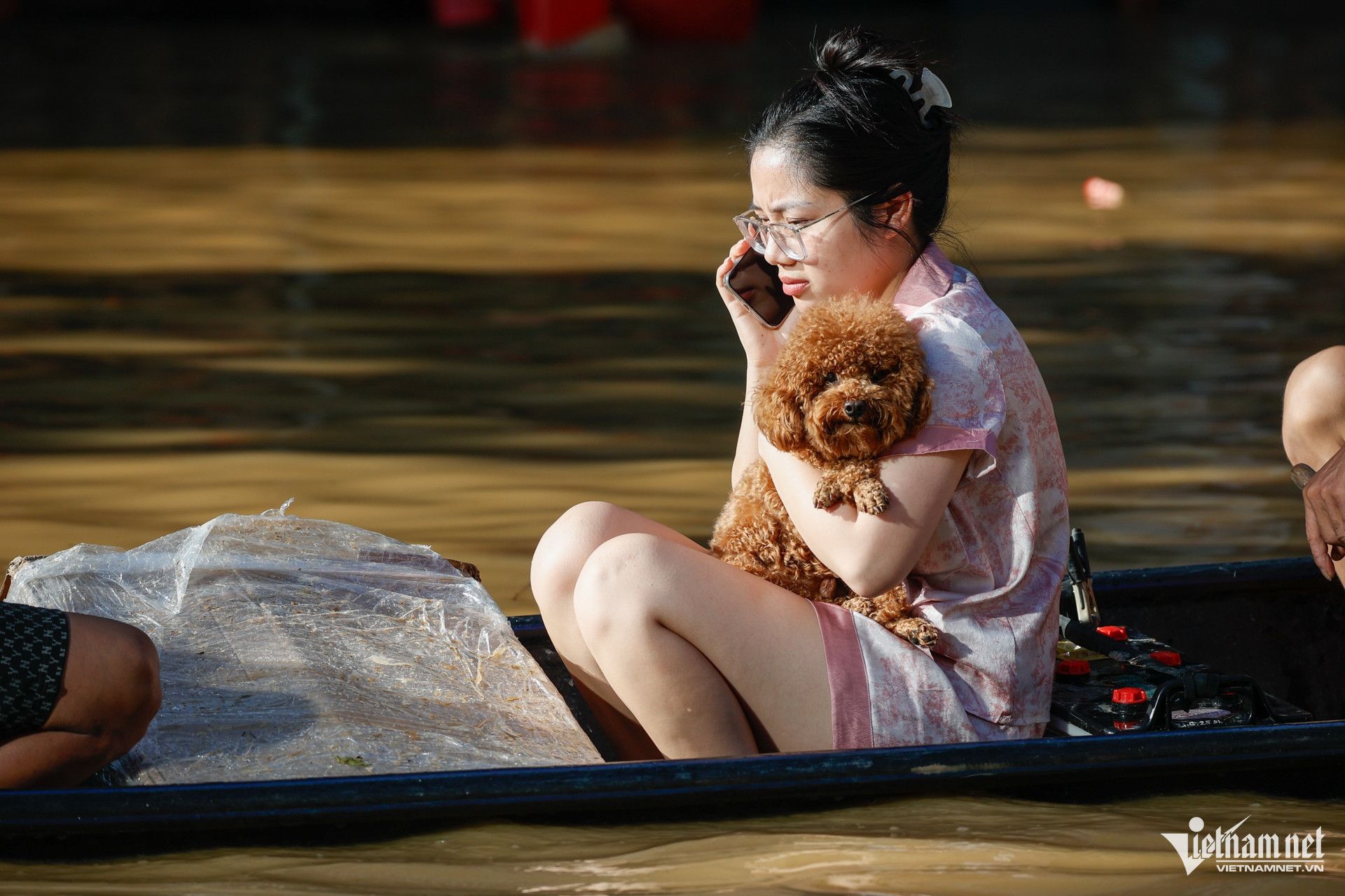 Thuyền lớn, cano, thuyền phao... hễ cứ cập bờ rất đông người dân xin lên để về nhà hoặc gửi đồ cho người thân. Cảnh tượng nhốn nháo với những tiếng gọi, tiếng cầu cứu... diễn ra tại khu vực nút giao đường Hoàng Văn Thụ - Đội Cấn.