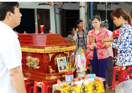 im trước nhà và rưng rưng nước mắt khi nhìn quan tài con trai Trần Minh