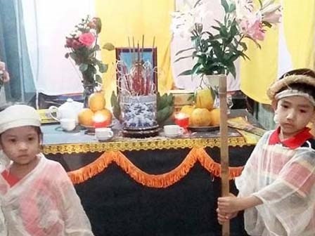 Xót xa hai cháu nhỏ đội khăn tang xin tiền mua quan tài cho bố