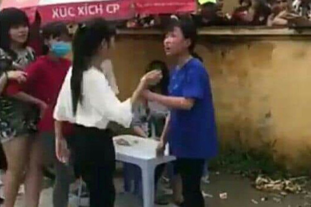 Theo clip, trước khi xảy ra vụ xô xát, một thiếu nữ mặc áo chống nắng màu đỏ đứng nói chuyện với thiếu nữ mặc áo xanh. Sau đó, bất ngờ thiếu nữ mặc áo đỏ tát mạnh vào mặt người kia. Một lát sau, thiếu nữ mặc áo xanh ra nói chuyện với thiếu nữ mặc áo trắng cạnh đó. Tuy nhiên, trong lúc đang nói chuyện, thiếu nữ mặc áo trắng tát vào mặt thiếu nữ áo xanh và 2 bên lao vào đánh nhau.