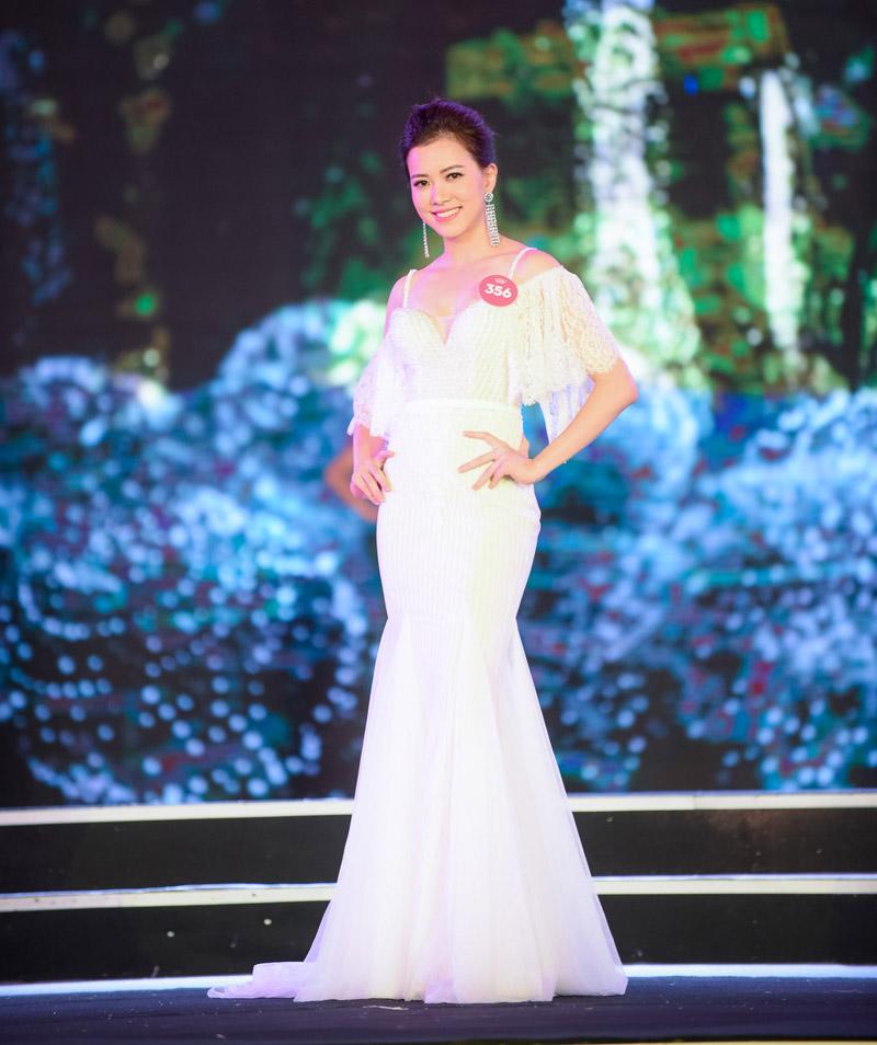 Mỹ nhân dân tộc Tày Thanh Vân sở hữu vẻ đẹp dịu dàng trong chiếc váy dạ hội trắng.