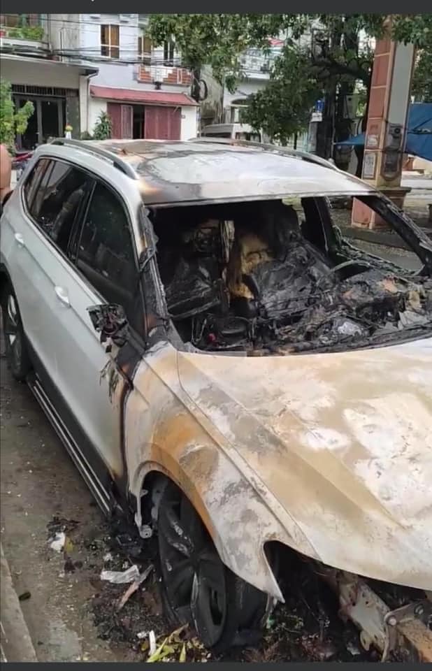"Chồng đi 'ăn quà vặt' vợ gọi không về và cái kết. Hạ Long, cháy xe ở cổng chào khu 6, phường Yết Kiêu. Chiếc Volkswagen's Tiguan trị giá gần 2 tỷ bị cháy hoàn toàn đầu xe và nội thất".