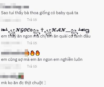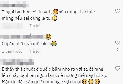 "Sao tôi thấy bà Thoa giống có tin vui quá ta", "Chị có bầu đúng không?", "Tao nghi bà Thoa có tin vui. Nếu đúng thì chúc mừng, nếu sai đừng la tui",... cư dân mạng bàn tán.