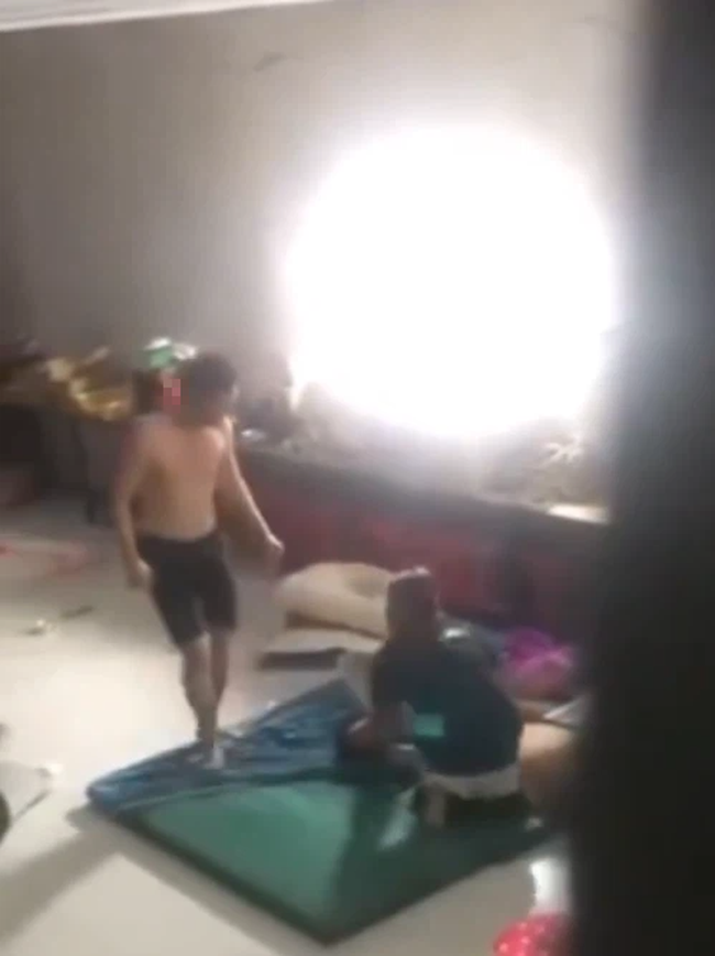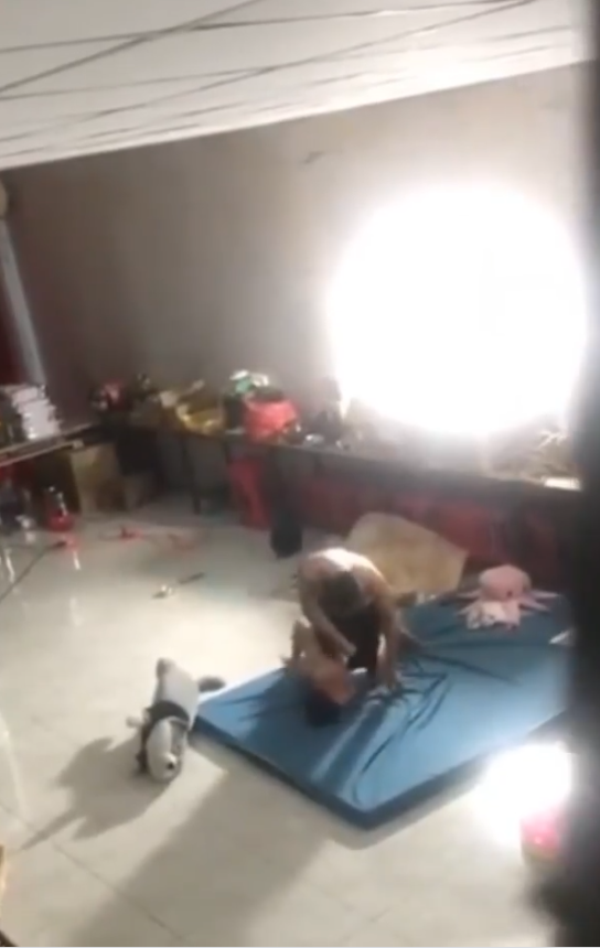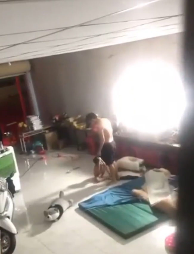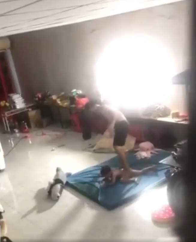 Thậm chí, người đàn ông này còn bế đứa trẻ rồi ném xuống dưới đất khiến người mẹ vì quá sợ hãi mà phải chạy ra giữ chân, van xin.
