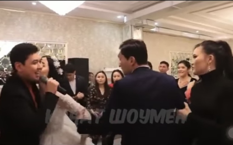 Chú rể đứng cách chỗ cô dâu vài bước chân, đang ôm eo khiêu vũ với một cô gái khác được cho là người yêu cũ của chú rể, khi nhận ra hành động của vợ đã tiến đến, thô bạo kéo vợ ra khiến cô dâu mất đà suýt ngã xuống sàn nhưng được cô gái khiêu vũ cùng chú rể kéo lên.