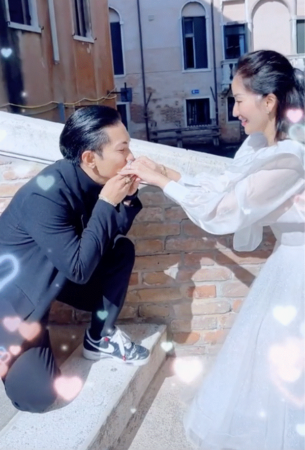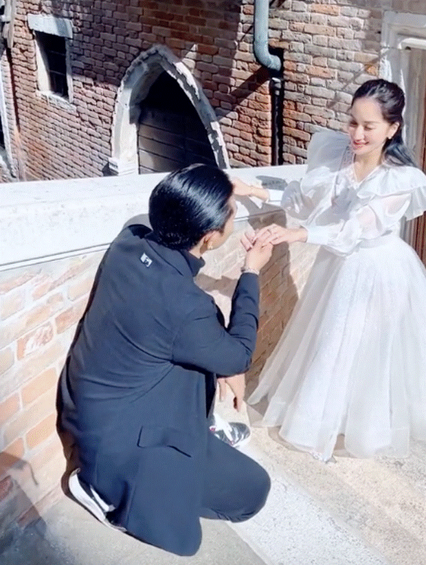 Cho đến mới đây, netizen xôn xao khi thấy clip Phan Hiển cầu hôn Khánh Thi. Đoạn clip này được đăng tải trên kênh TikTok chính chủ của Khánh Thi - Phan Hiển. Khi được Phan Hiển quỳ xuống hôn tay, Khánh Thi cười tươi rạng rỡ, thể hiện rõ sự hạnh phúc vui sướng. Hình ảnh chiếc nhẫn kim cương đeo ngón áp út của Khánh Thi như minh chứng cho tình yêu của cô và Phan Hiển suốt bao nhiêu năm qua.