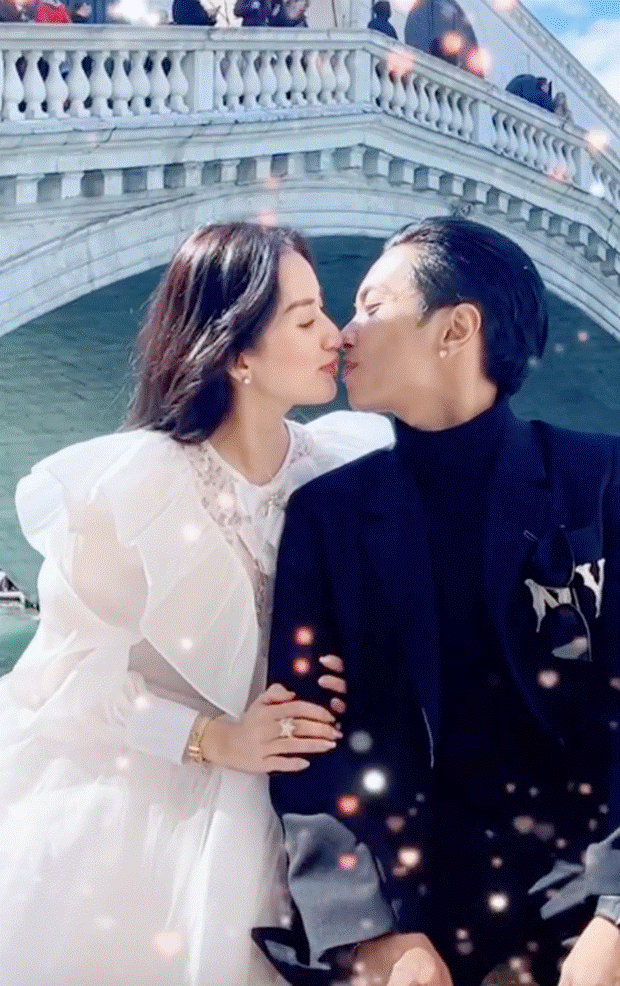 Nụ hôn tay ngọt ngào thay lời yêu thương mà Phan Hiển dành cho bà xã