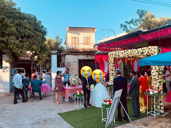 Tuy vậy, nhiều sự kiện quan trọng đã lên lịch từ trước khó có thể hoãn lại, ví dụ như đám cưới chẳng hạn. Trong bức ảnh, có thể thấy đám cưới được tổ chức ngay tại khu dân cư. Ở bàn tiếp khách, ngoài cô dâu chú rể và bố mẹ hai bên còn có hai dân quân túc trực, thực hiện các biện pháp đảm bảo an toàn cần thiết. Khách khi tham gia đám cưới có đeo khẩu trang, đứng giãn cách ở khoảng cách cần thiết và được đo thân nhiệt đảm bảo.