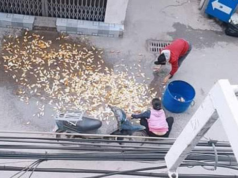 Hiện tượng thả cá, thả cả túi nilon và ném đồ vật xuống sông vẫn còn phổ biến ở nhiều nơi.