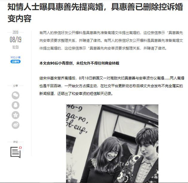 Thông tin đăng tải trên tờ QQ về Goo Hye Sun và chuyện ly hôn với Ahn Jae Hyun đang là chủ đề gây xôn xao dư luận.