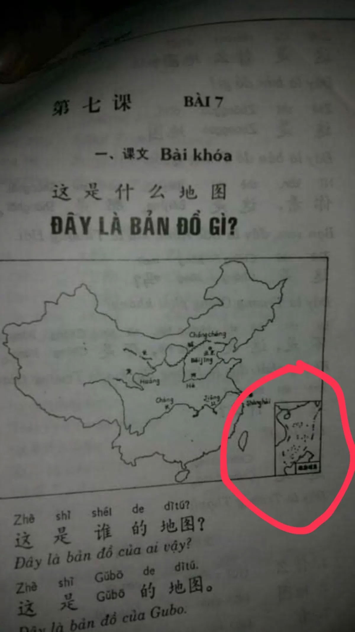 Hình ảnh "đường lưỡi bò" xuất hiện trên các giáo trình tiếng Trung Quốc. Ảnh: NDCC
