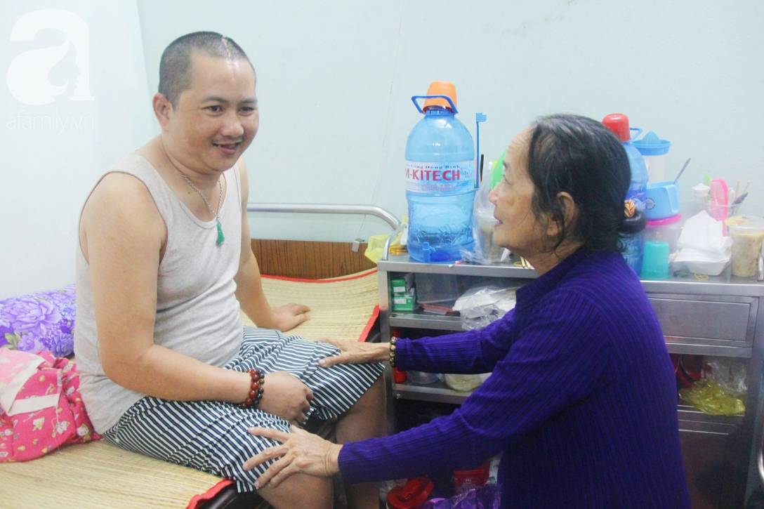 "Bà thương thằng Thanh lắm. Sao lại có thể bỏ nó được, phải chi bà có tiền để lo tiếp cho nó điều trị. Giờ thì được ngày nào hay ngày đó, hết tiền, mẹ con mình về quê Thanh nhỉ", nói đoạn bà Cúc quay sang nhìn anh Thanh cười hiền hậu.