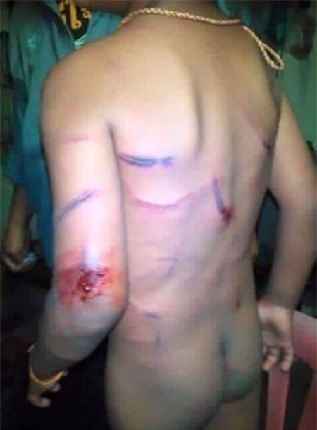 Đầy lằn roi trên người bé trai. Ảnh: A.X |