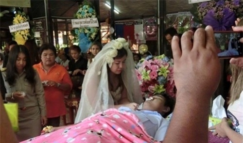 Và để thực hiện lời hứa của người yêu, trong đám tang của anh, cô gái trẻ đã quyết định mặc bộ váy cưới để làm cô dâu bên cạnh anh. Cô gái với bộ váy cưới trắng tinh khôi luôn bên cạnh người yêu chăm sóc cho anh vào những giây phút cuối cùng của cuộc đời. Hành động của cô gái khiến nhiều người vô cùng xót xa, vừa thương cho cô khi chưa một lần được làm vợ người mình yêu, lại càng xót thương hơn cho số phận của chàng trai trẻ và tình yêu của hai người.