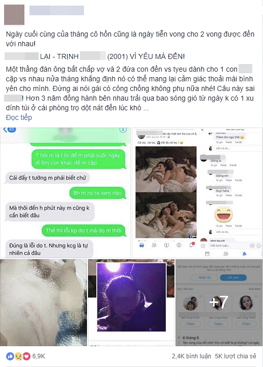 Chồng về tháng 1/2018 thì tháng 4/2018 bắt đầu cặp kè với 1 nhân viên quán hát. 1/8/2018 bị bắt quả tang tại khách sạn cùng cô này không thể chối cãi được. Thử hỏi xem trên đời này có loại chồng nào nhẫn tâm chà đạp vợ con của mình như thế hay không?