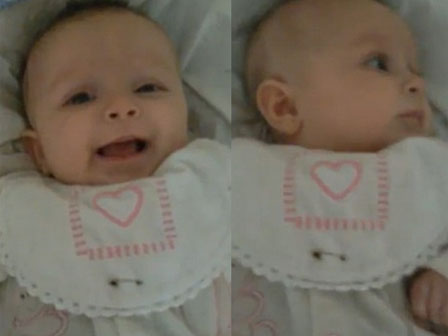 bom. Em bé mới 2 tháng tuổi, còn rất hồn nhiên. Trong video, em