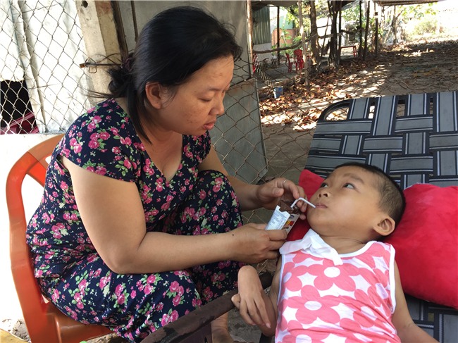 Sinh ra bình thường như bao đứa trẻ khác nhưng đến tháng thứ 6, sau một lần bệnh, tay chân Quí bắt đầu teo tóp. Người Quí cứng ngắc. Chị Nguyệt đưa con đi khám nhiều nơi, chạy chữa nhiều chỗ nhưng vẫn không thuyên giảm.