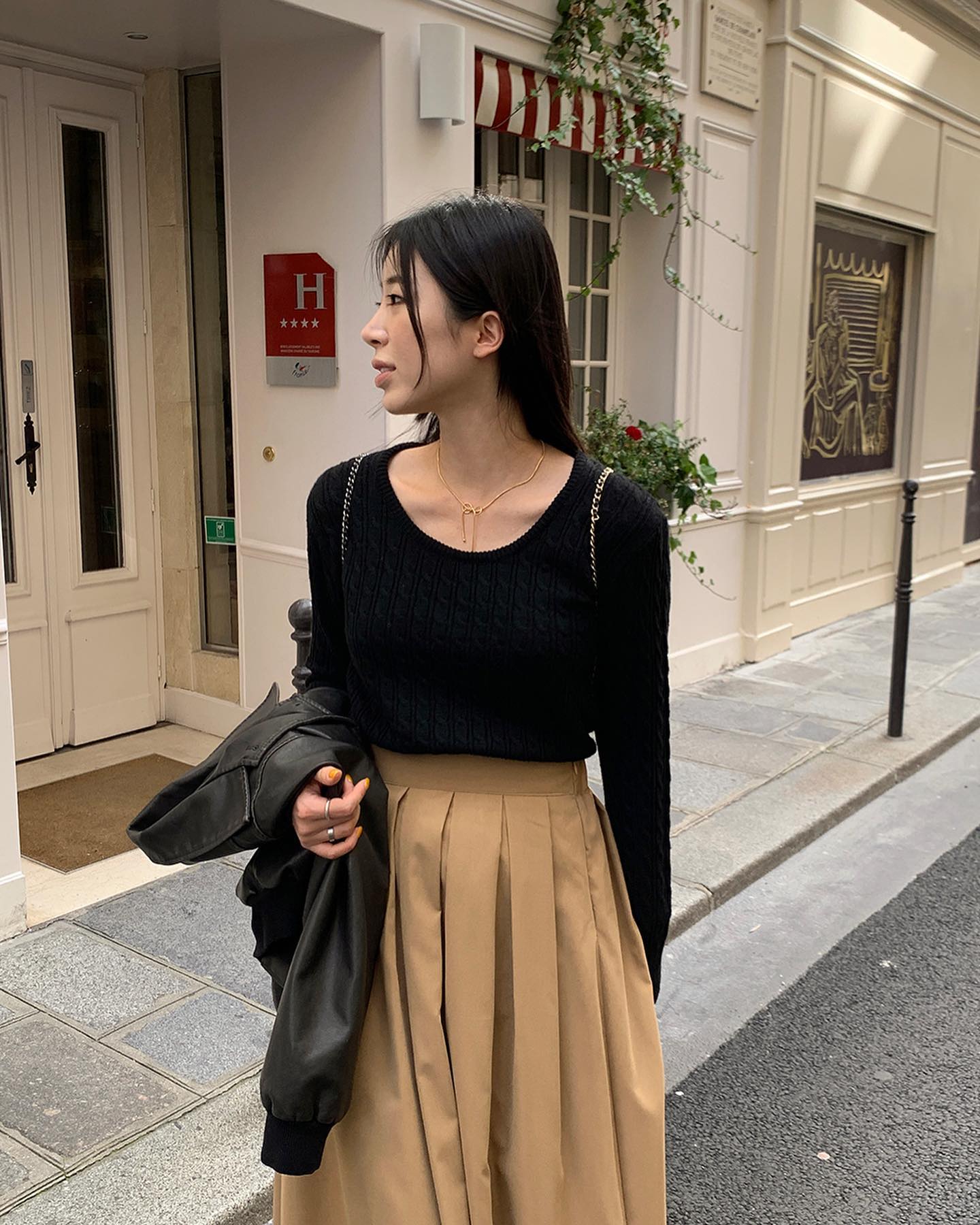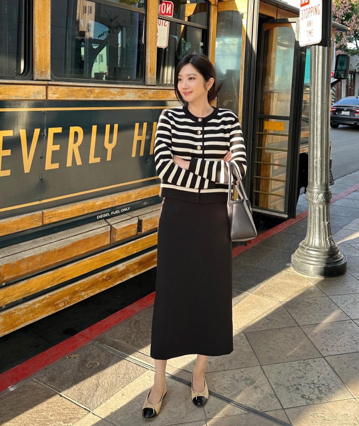 Thay vì sắm chân váy bút chì cho tủ đồ năm mới, chị em nên chuyển sang diện chân váy suông. Mẫu chân váy này không hề kén người mặc nhờ phom dáng không quá rộng rãi, cũng chẳng ôm sát. Chân váy suông còn giúp người diện ghi điểm ở sự tinh tế và trang nhã. Các nàng nên sơ vin khi diện chân váy suông. "Bí kíp" này sẽ tạo vẻ chỉn chu và thanh lịch cho tổng thể trang phục, đồng thời tôn dáng tối ưu. Để hoàn thiện outfit sành điệu và đẹp mắt, các nàng nên đi những kiểu giày như giày cao gót mũi nhọn, sandal quai mảnh hoặc giày màu be.