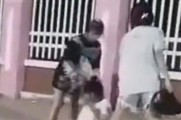 Nữ sinh bị đánh vào ban đêm, bên ngoài hàng rào trường. Ảnh cắt ra từ clip