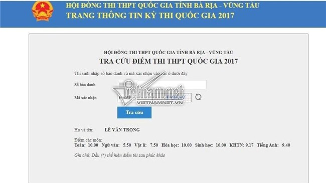 Theo thông tin tra cứu điểm thi từ Sở GD-ĐT tỉnh Bà Rịa - Vũng Tàu, đã có thí sinh đạt được mức điểm 30 với 3 bài thi được 10 điểm.